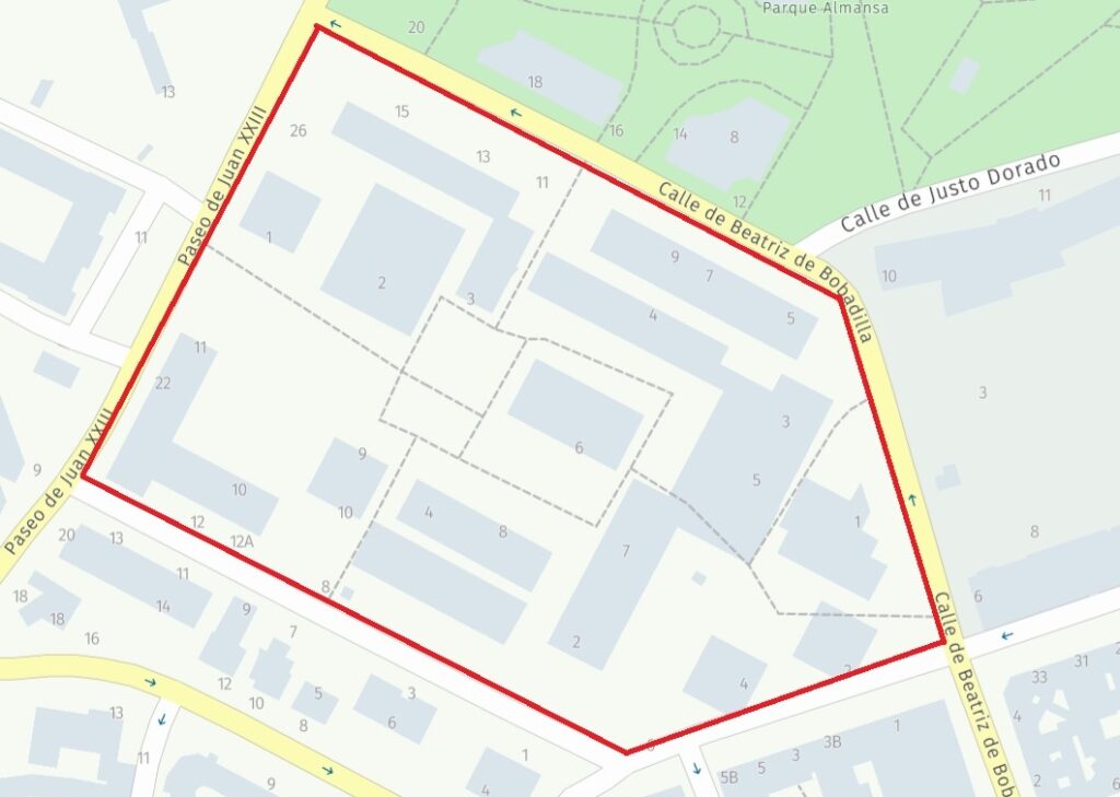 Vor Ort stellte ich während der Begehung des damaligen Stadiongeländes und beim Vergleich mit historischen Bildern fest, dass die Straßenzüge damals wie heute identisch sind und ein ungewöhnliches Fünfeck bilden. Genau in diesem Fünfeck befand sich bis 1966 das Gelände des alten Metropolitano. Und ausgerechnet dieses Fünfeck verleiht seit 1947 auch dem Vereinswappen von Atlético Madrid seine charakteristische Form.