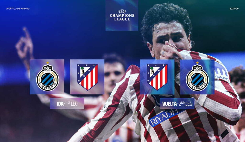 Atlético Madrid trifft in den Champions League Play-Offs auf den FC Brügge. Das Hinspiel steigt im Jan-Breydel-Stadion, das Rückspiel im Riyadh Air Metropolitano. Die Auslosung fand in Nyon statt.