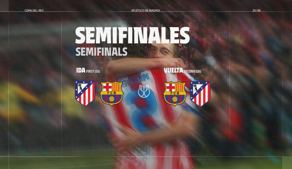 Copa del Rey, Flutlicht, Heimspiel: Atlético empfängt den FC Barcelona zum Halbfinal-Hinspiel. Mentalität trifft auf Klasse, Simeone auf Flick – und 90 Minuten entscheiden über die Ausgangslage im Kampf um das Finale in Sevilla. Alles reinwerfen, alles glauben. ¡Vamos Atleti!